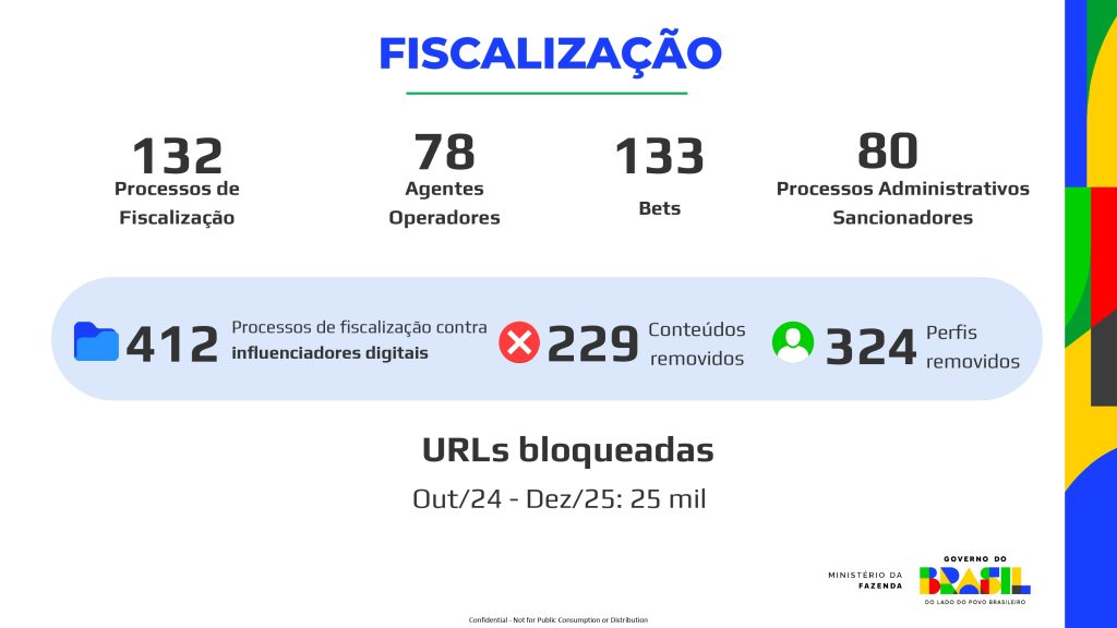 Além do bloqueio de sites ilegais, a Subsecretaria de Monitoramento e Fiscalização registrou, no ano passado, 132 processos envolvendo 133 bets. Desses processos, 80 estão em trâmite para aplicação de penalidades.