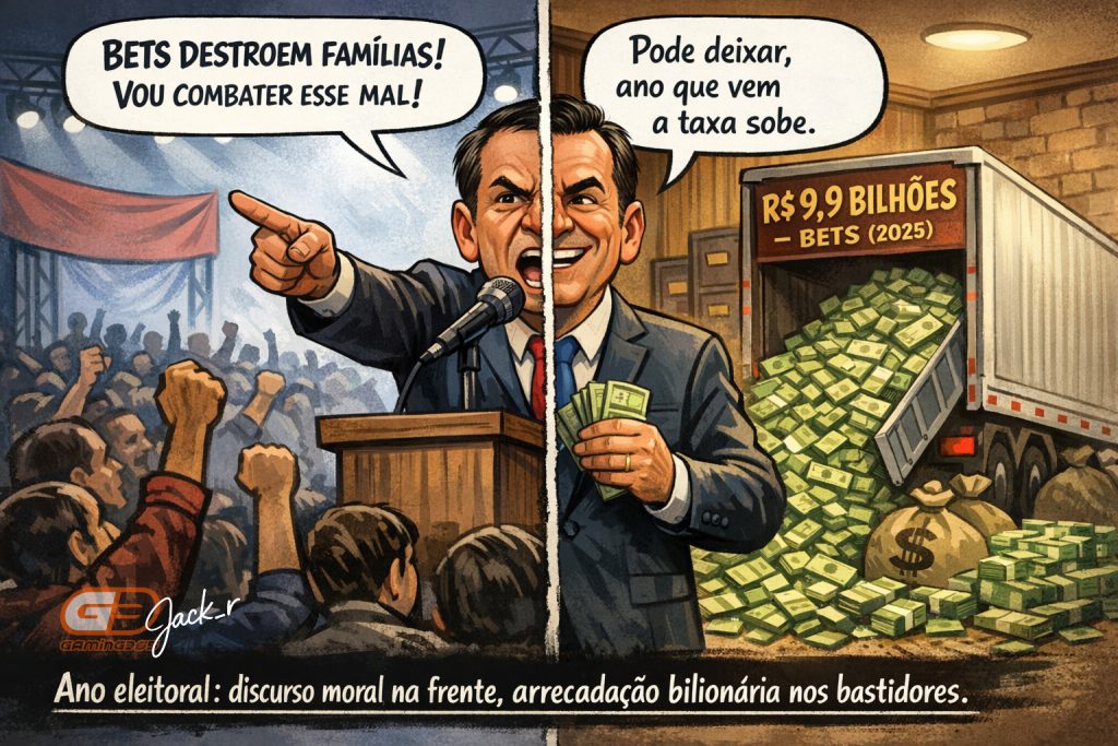 Em ano eleitoral, o roteiro se repete: no microfone, o político brada contra as bets, vende indignação moral e promete “combater esse mal”. Nos bastidores, longe das câmeras e dos aplausos, o mesmo Estado conta o dinheiro. Muito dinheiro.