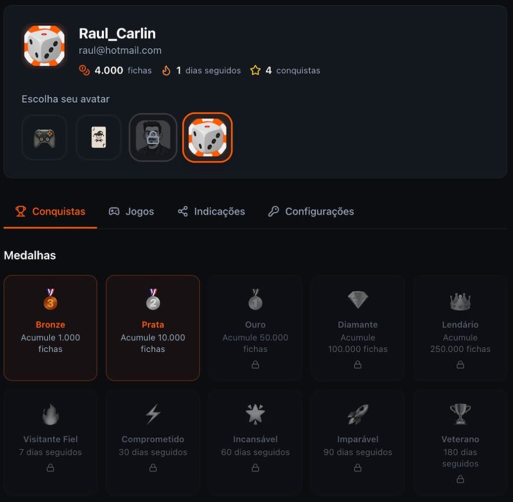Além do acesso aos jogos demo, a experiência dentro do Play365 é estruturada como um ambiente gamificado. O usuário pode personalizar seu avatar, acompanhar seu progresso, desbloquear conquistas e receber recompensas simbólicas conforme interage com o conteúdo educativo e retorna à plataforma.