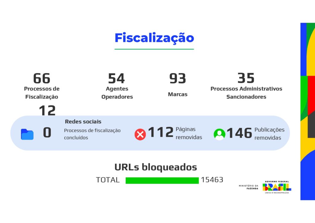 A Secretaria de Prêmios e Apostas do Ministério da Fazenda (SPA-MF) divulgou nesta terça-feira (26), um quadro preciso do segmento e registrou no primeiro semestre o bloqueio de 15.463 páginas, retiradas do ar pela Agência Nacional de Telecomunicações (Anatel), desde outubro de 2024. Além disso, a SPA registrou que 17,7 milhões de brasileiros realizaram apostas nos sites e aplicativos das 182 bets autorizadas pela Secretaria.